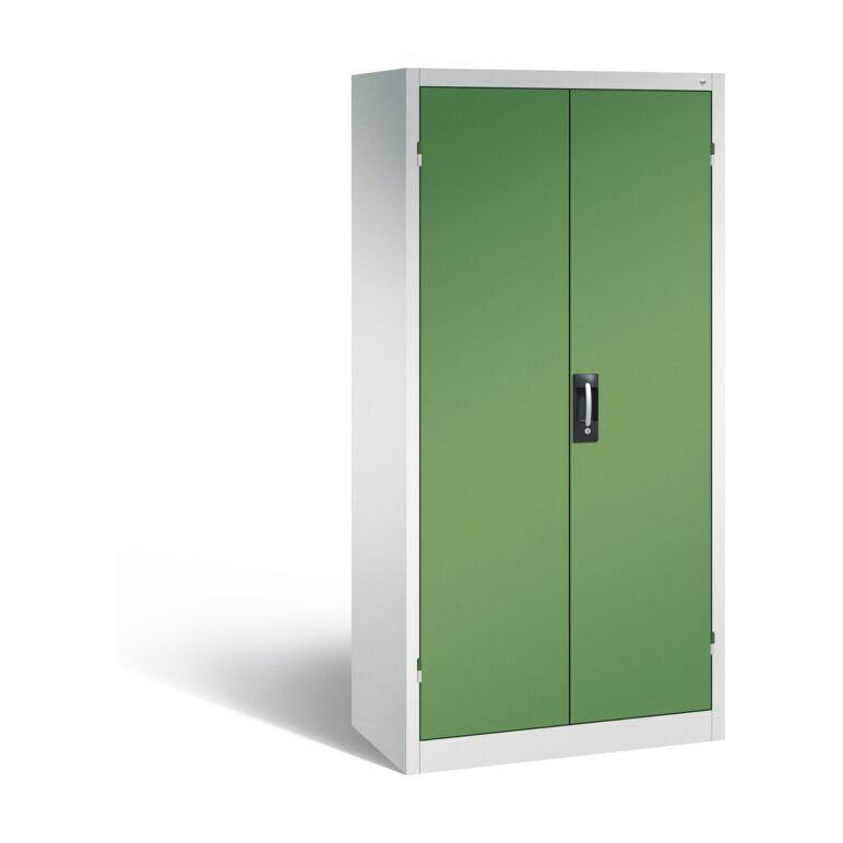 Akkuladeschrank Serie 89, als Werkzeugschrank geeignet.Eigenschaften:Korpus aus stabiler Stahlkonstruktion mit hochwertiger Einbrennbeschichtung für hohe UV-BeständigkeitMit Kunststoffgleitern als praktischer Schrank- und FußbodenschutzRückwand perforiert zur optimalen BelüftungTüren verstärkt für hohe Stabilität und verdeckten SchließstangenTüraufhängung in außen liegenden Scharnieren mit großzügigem Öffnungswinkel ca. 180 GradZueinanderschlagend für gemeinsamen Verschluss1 Ergonomischer Muldengriff Ergo-Lock 4.0 für optimale Bedienungssicherheit und Verschleißfestigkeit3-Riegel-Verschluss mit Zylinderschloss und 2 Schlüsseln1 Einlegeboden aus Stahl verzinkt mit hoher Traglast von 70 kg3 Elektro-Einlegeböden aus Stahl verzinkt mit hoher Traglast von 70 kg und 5-Fach-Streckdosenleiste mit 3 m Zuleitung inkl. intigrierter Wanne mit Belüftungsöffungen zur verdeckten Unterbringung von Netzteilen und Kabeln sowie zentraler Masterleiste mit FI-Schutzschalter und temperaturgesteuertem LüfterMaße (H x B x T): 1950 x 930 x 500 mmKorpus: RAL 7035 LichtgrauTüren: RAL 6011 ResedagrünInneneinrichtung: RAL 7035 LichtgrauLieferumfang:1x C+P Akku-Ladeschrank für 15 E-Werkzeuge, H1950xB930xT500mm, Resedagrün/Lichtgrau