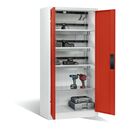 C+P Akku-Ladeschrank für 15 E-Werkzeuge, H1950xB930xT500mm, Feuerrot/Lichtgrau
