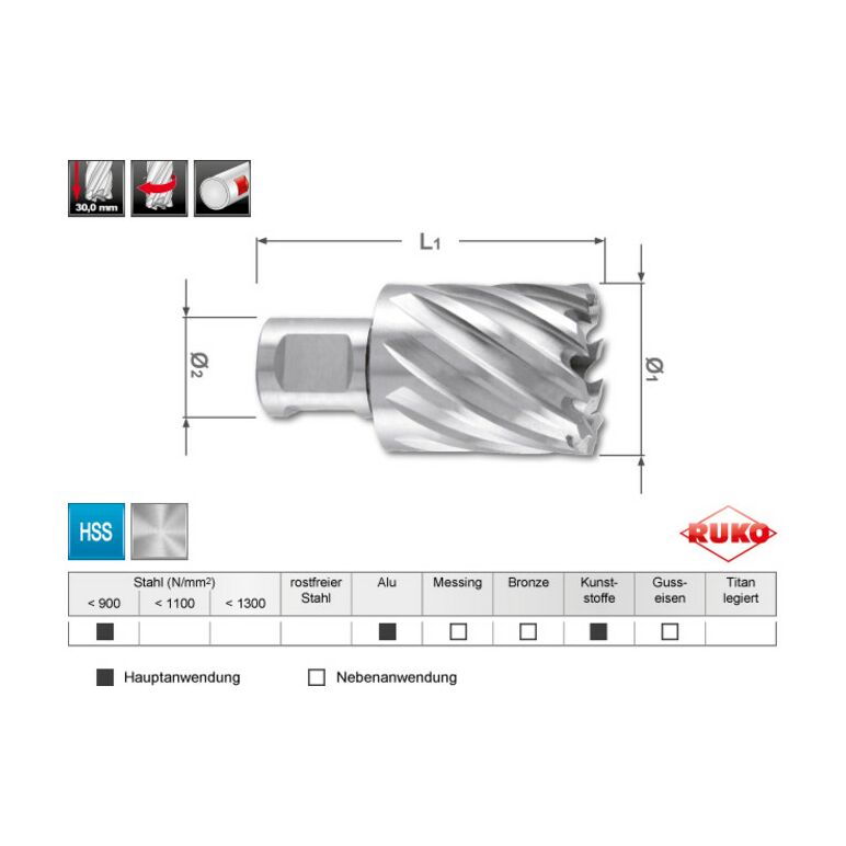 RUKO Kernbohrer HSS mit Weldonschaft 3/4