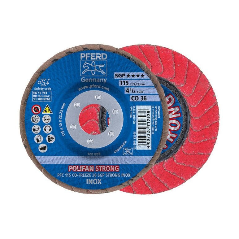 PFERD 67789125PFC 125 CO-FREEZE 50 SGP STRONG INOX Fächerschleifscheibe Durchmesser 125mm Bohrungs-