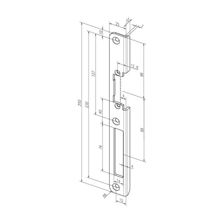 für ProFix 2 118.14 · mit Riegelausschnitt · für Normstahlzargen geeignet · schmale Ansichtsbreite · mit 3 Befestigungsbohrungen