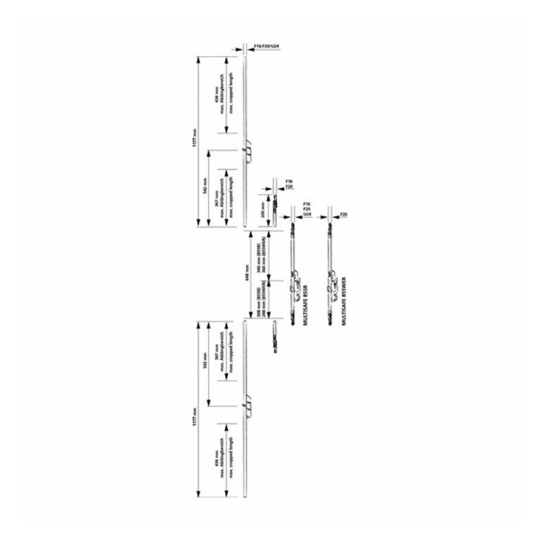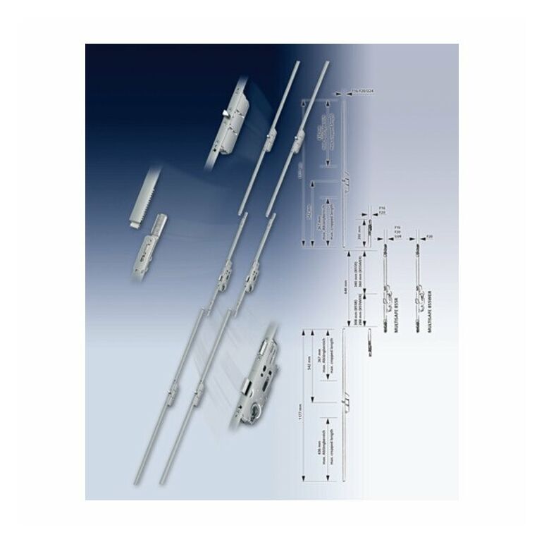 1 Bolzenriegel · Länge 1177 mm · Ablängbereich: Nussmitte bis Bolzen unten= 850-650 mm, oben 730-515 mm Weitere technische Eigenschaften: · Länge: 1177mm
