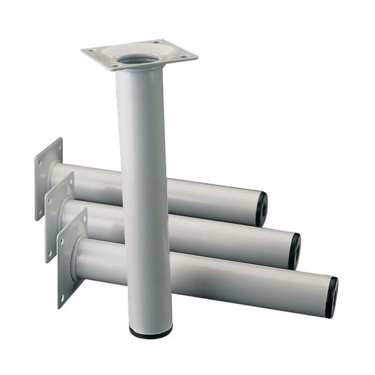 Möbelfuß weißalu.30mm H.800mm Platte ELEMENT SYSTEM aus Stahl-Rundrohr 30 mm Ø, lackiert · Anschraubplatte 60 x 60 mm · mit M10-Gewinde · Tragkraft je Fuß 50 kg · Bodenunebenheiten können durch Einsatz der Regulierschrauben ausgeglichen werden (geringere Tragkraft berücksichtigen!). ähnlich RAL 9006 = weißaluminium ähnlich RAL 9003 = weiß Weitere technische Eigenschaften: · Befestigungsart: Anschraubplatte · Material: Stahl