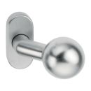 Knopf für Rahmentüren/Haustüren · schräg, fest auf ovaler Rosette · Rosette: Stärke 14,5 mm · Höhe 75 mm · Breite 34 mm · unsichtbare Verschraubung · DIN links / rechts · Lieferung ohne Stift und Schrauben Weitere technische Eigenschaften: · Schraublochabstand: 50mm · Befestigungssystem: verdeckte Verschraubung · Rosettenform: oval · Rosetten-Breite: 34mm · Knopftiefe: 103mm · Anschlagrichtung: DIN links / rechts · Farb-Nr.: EST · Knopfdurchmesser: 52mm · Rosetten-Höhe: 75mm Form Kugel-Knopf Rosetten-Höhe 75 Material Edelstahl Verpackungsgröße 1.00 Schraublochabstand 50 Oberfläche matt Aufnahme M12 Rosetten-Breite 34 Rosettenform oval Ausführung gekröpft Knopfdurchmesser 52 Farb-Nr. EST Modell 2033/4020 Lagerung fest