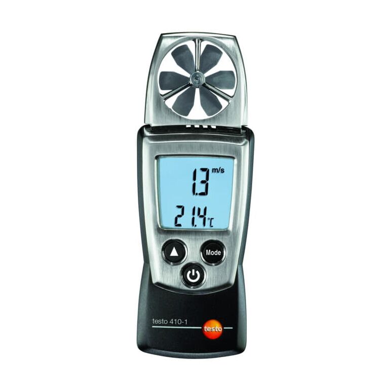 - Das Flügelrad-Anemometer testo 410-1 misst Luftgeschwindigkeit und Lufttemperatur