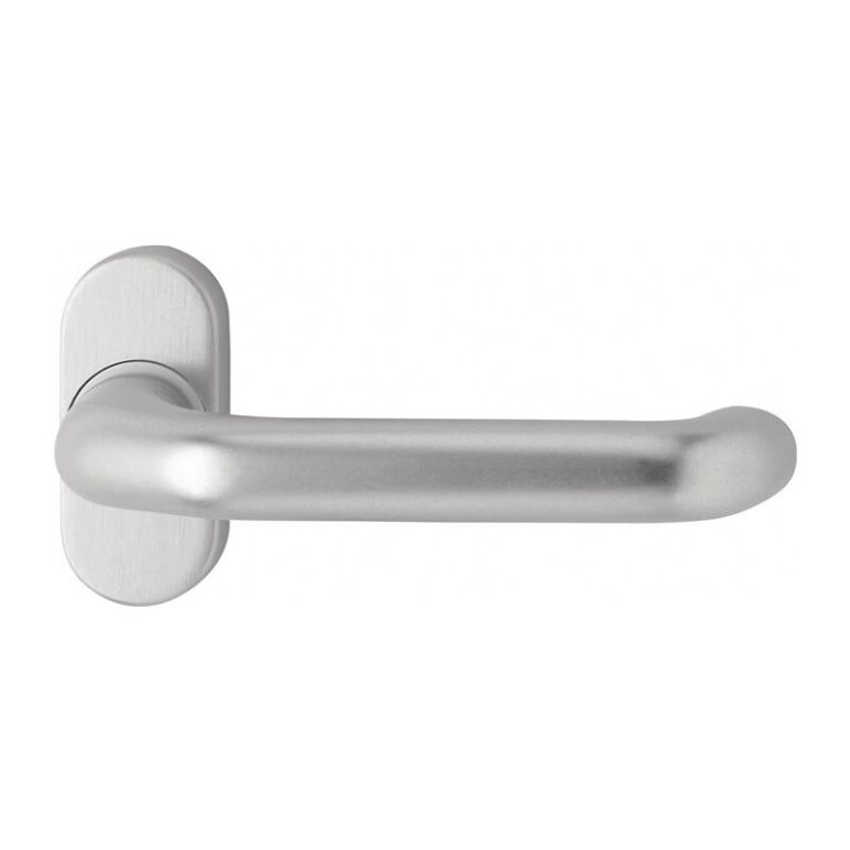 Profiltürdrückerlochteil 1300/2033 Alu.F12 ov.8mm gekr.EDI für Rahmentüren · schräg, fest-drehbar auf ovaler Rosette mit Hochhaltefeder · Rosette: Stärke 14,5 mm · Höhe 75 mm · Breite 34 mm · unsichtbare Verschraubung · Lieferung ohne Stift und Schrauben · DIN links / rechts Weitere technische Eigenschaften: · Breite: 34mm · Drückerlänge: 135mm · Drückertiefe: 72mm · Stärke: 14,5mm · Anschlagrichtung: DIN links / rechts · Norm: DIN 1906 · Lagerung: fest-drehbar · Rosetten-Höhe: 75 mm