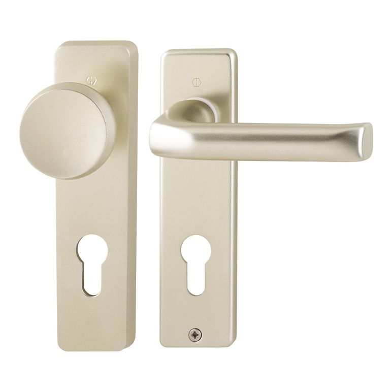 für Zimmertüren · Schilder innen sichtbar verschraubt · Innenschild: Länge 165 mm, · für Türstärke 37 - 47 mm · mit Knopfschild 54 / 227K · Vierkant 8 mm · Anschlagrichtung DIN links / rechts · Entfernung 72 mmWeitere technische Eigenschaften:· Befestigungsart: Profilstift· Entfernung: 72mm· Vierkant: 8mm