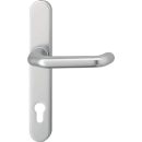 Drückergarnitur für Rahmentüren · Entfernung 92 mm · Vierkant 8 mm · PZ-gelocht · Drücker fest-drehbar gelagert · innen mit Hochhaltefeder · Clipschildtechnik auf Druckgussunterkonstruktion · Stärke 10 mm · Höhe 245 mm · Breite 36 mm · Verschraubung von innen nach außen · unsichtbar verschraubt · DIN links / rechts · Lieferung ohne Stift und SchraubenWeitere technische Eigenschaften:· Ergänzung: Lieferung ohne Stift und Schrauben· Zylinderabdeckung: ohne ZA· Norm: DIN 1906· Lagerung: fest/drehbar