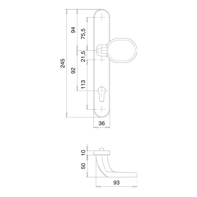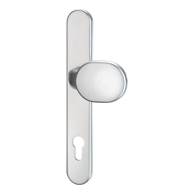 Wechselgarnitur für Rahmentüren · Entfernung 92 mm · Vierkant 8 mm · PZ-gelocht · Drücker fest-drehbar gelagert · mit Hochhaltefeder · Clipschildtechnik auf Druckgussunterkonstruktion · Stärke 10 mm · Höhe 245 mm · Breite 36 mm · Verschraubung von innen nach außen · unsichtbar verschraubt · DIN links / rechts · Lieferung ohne Stift und SchraubenWeitere technische Eigenschaften:· Ergänzung: Lieferung ohne Stift und Schrauben· Zylinderabdeckung: ohne ZA· Norm: DIN 1906· Lagerung: fest/drehbar