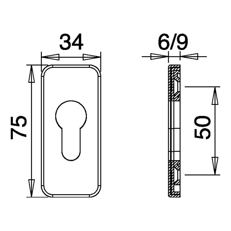 für Rahmentüren · Lochung PZ · Höhe 74,5 mm · Breite 34 mm · unsichtbare Verschraubung · Lieferung ohne SchraubenWeitere technische Eigenschaften:· Zylinderabdeckung: ohne ZA· Farb-Nr.: F1