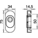 Schlüsselrosette zum Aufschieben für Rahmentüren · Lochung PZ mit Ziehschutz · für Zylinderüberstände von 11-14 mm · Stärke 14,5 mm · Höhe 75 mm · Breite 34 mm · unsichtbare Verschraubung · Lieferung ohne SchraubenWeitere technische Eigenschaften:· Zylinderabdeckung: mit ZA· Farb-Nr.: EST