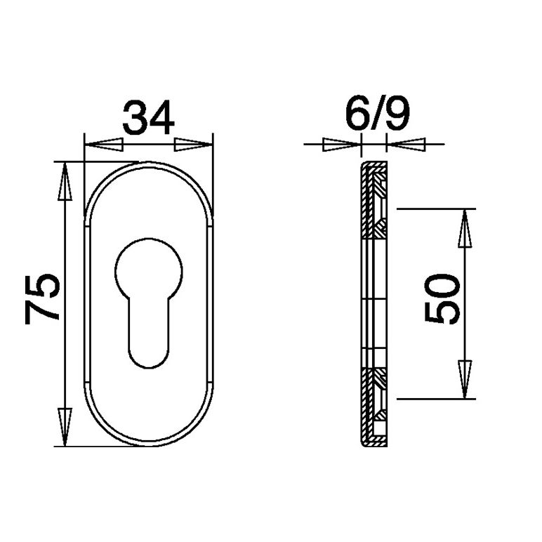 Schlüsselrosette 0813/6003 Aluminium F1 Schildstärke 6 mm pz oval