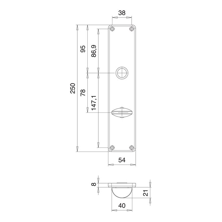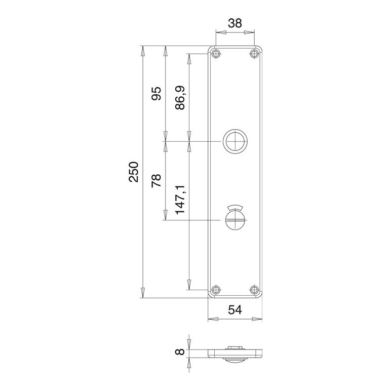 Edelstahl · kantig · sichtbare Verschraubung · Breite 54 mm · Länge 250 mmWeitere technische Eigenschaften:· Breite: 54mm· Länge: 250mm· Schildstärke: 8 mm
