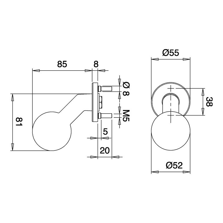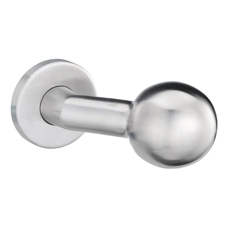 aus Edelstahl · auf runder Rosette · gekröpfter Kugelkopf · Rosetten-Ø 55 mm · Höhe 85 mm · Rosetten-Stärke 8 mm · Schraublochabstand 38 mmWeitere technische Eigenschaften:· Form: gekröpfter Kugelkopf