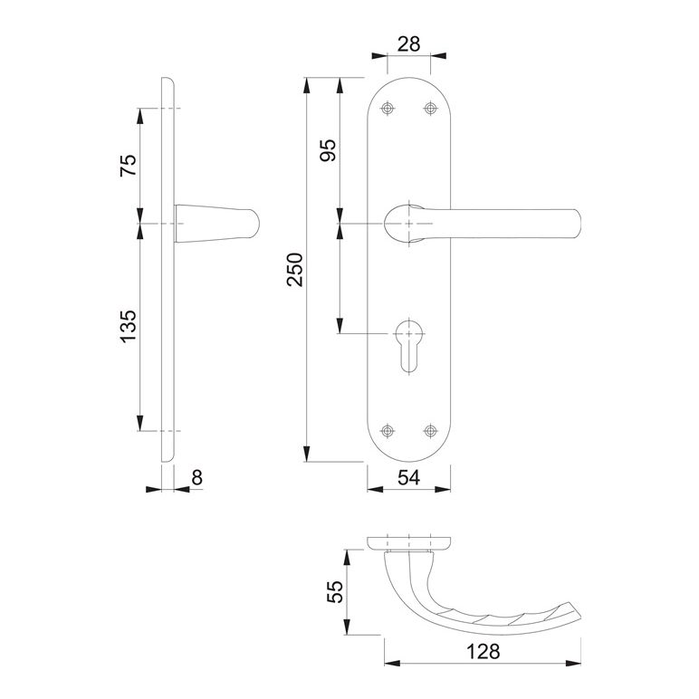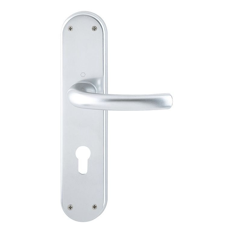 Innentür-Langschild-Garnitur · geprüft nach DIN EN 1906 (Gebrauchs-Kategorie Klasse 3) · Verbindung: HOPPE-Schnellstift mit HOPPE-Vollstift (Stift-/Lochteil) · Vierkant 8 mm · Schilder sichtbar verschraubt · Entfernung 72 mmWeitere technische Eigenschaften:· Schildstärke: 8 mm· Drückerlänge: 128mm· Befestigungssystem: Schnellstift-Verbindung· Drückertiefe: 54mm· Anschlagrichtung: DIN links / rechts· Norm: DIN 1906