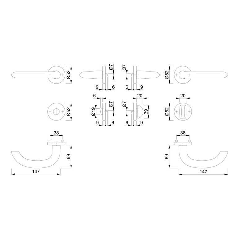 Innentür-Rosetten-Garnitur geprüft nach DIN EN 1906 (Gebrauchs-Kategorie Klasse 3) · Türgriffe mit Schnellstift-Verbindung (mit 8 mm Vollstift) für Türstärke 37 - 42 mm und Rückholfeder · Rosetten mit Stütznocken unsichtbar verschraubt · Anschlagrichtung DIN links / rechtsWeitere technische Eigenschaften:· Befestigungssystem: Schnellstift· Nockenabstand: 38mm