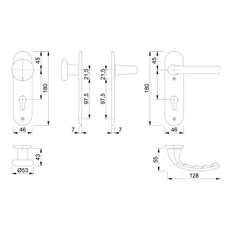 Kurzschildgarnitur Tôkyô 53/273KP/1710 Aluminium F1 PZ abgerundet Wechselgarnitur