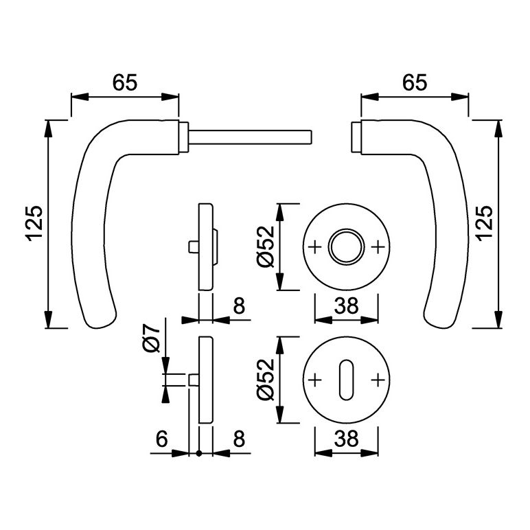 Hoppe Rosettengrt.Den.E1310Z/42KV/42KVS VA F69 rd.OB DIN L/R D/D