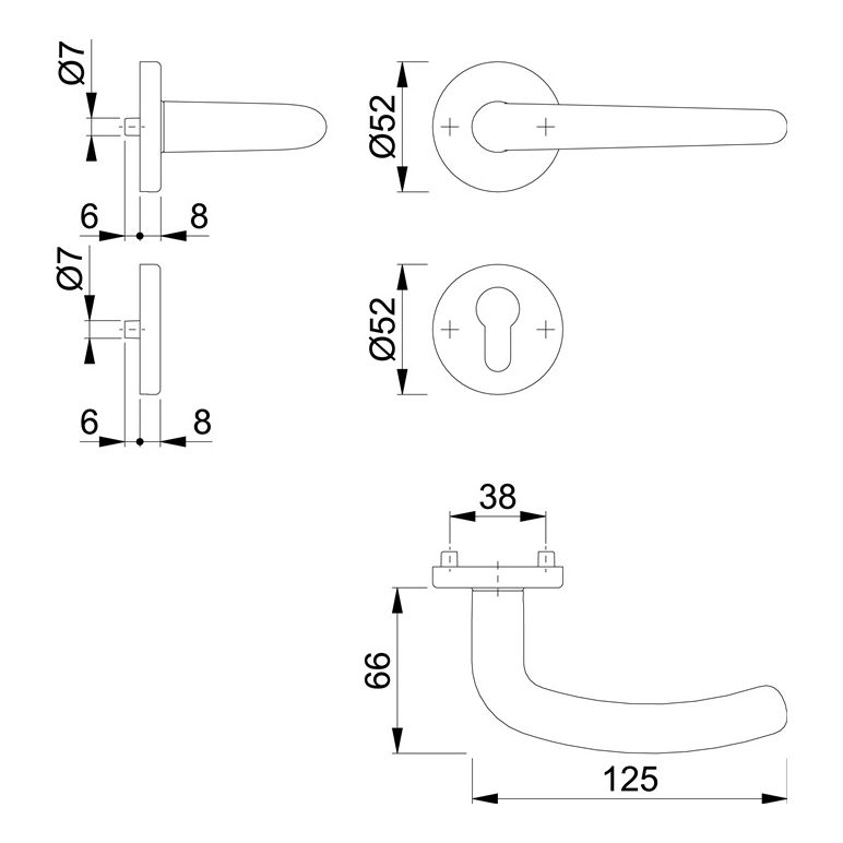 Edelstahl-Innentür-Rosetten-Garnitur (Türgriff Garnitur) · geprüft nach DIN EN 1906 (Gebrauchs-Kategorie Klasse 3) · Türgriff mit Schnellstift-Verbindung · Rosetten mit Kunststoff-Unterkonstruktion · Rückholfeder und Stütznocken · verdeckte, durchgehende Verschraubung mit selbstschneidenden Gewindeschrauben · Vierkant 8 mm · für Türstärke 37 - 42 mm · Anschlagrichtung DIN links / rechtsWeitere technische Eigenschaften:· Befestigungssystem: Schnellstift· Nockenabstand: 38mm