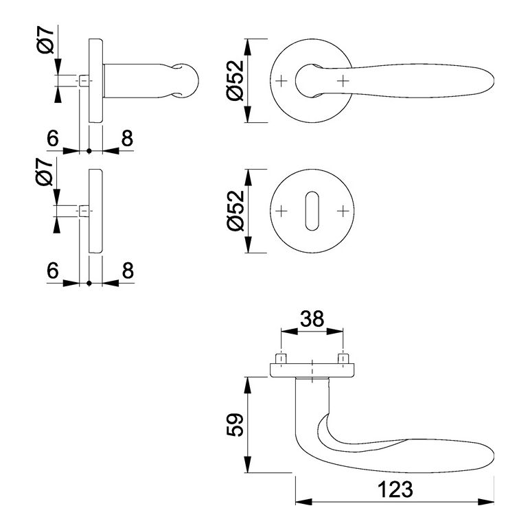HOPPE-Edelstahl-Rosetten-Türgriff-Garnitur mit Schlüsselrosetten für Innentüren: geprüft nach DIN EN 1906: 37-0140A · Objekt-Garnitur Lagerung: Türgriffe lose · Rückholfedern rechts/links verwendbar · wartungsfreie Gleitlager Verbindung: HOPPE-Schnellstift mit HOPPE-Vollstift (Stift-/Lochteil) Unterkonstruktion: Kunststoff · Stütznocken Befestigung: verdeckt · durchgehend · wechselseitig · MehrzweckschraubenWeitere technische Eigenschaften:· Befestigungssystem: Schnellstift