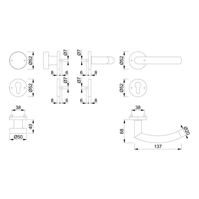 Innentür-Rosetten-Garnitur: geprüft nach DIN EN 1906 (Gebrauchs-Kategorie Klasse 3) · Türgriff mit Schnellstift-Verbindung · Rosetten Kunststoff-Unterkonstruktion · Rückholfeder und Stütznocken · verdeckte, durchgehende Verschraubung mit selbstschneidenden Gewindeschrauben · Vierkant 8 mm · für Türstärke 37-42 mm · Anschlagrichtung DIN links / rechtsWeitere technische Eigenschaften:· Befestigungssystem: Schnellstift· Nockenabstand: 38mm