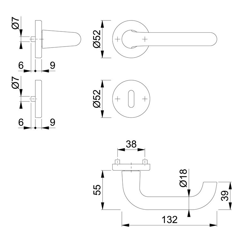 Innentür-Rosetten-Garnitur geprüft nach DIN EN 1906 (Gebrauchs-Kategorie Klasse 3) · Türgriffe mit Schnellstift-Verbindung (mit 8 mm Vollstift) für Türstärke 37-42 mm · Rosetten mit Kunststoff-Unterkonstruktion, Rückholfeder und Stütznocken · verdeckte, durchgehende Verschraubung mit selbstschneidenden Gewindeschrauben · Anschlagrichtung DIN links / rechtsWeitere technische Eigenschaften:· Befestigungssystem: Schnellstift· Nockenabstand: 38mm