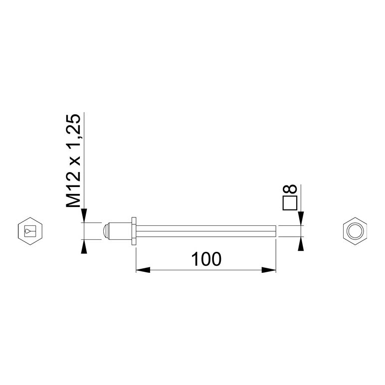 Vierkantstift FDW-Profilstift Vierkant 8 x 100 mm Eisen verzinkt geteilt M12 x 1,25