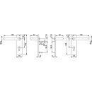 geprüft nach DIN EN 1906:37-B140U · Kunststoff · in U-Form · mit Stahlkern · fest/drehbar gelagert · wartungsfreie Gleitlager · Stahl-Unterkonstruktion · mit HOPPE-Vollstift-Verbindung 9 mm · Kurzschild: Länge 165 mm, Breite 46 mm · aufklippbare Abdeckschilder · Lochung PZ · Entfernung 72 mm · verdeckte, durchgehende Verschraubung mit Gewindeschrauben M5 · für Türstärke 40-66 mm · DIN links / rechts verwendbarWeitere technische Eigenschaften:· Ergänzung: D/D· Lagerung: fest-drehbar-gelagert· Vierkant: 9mm