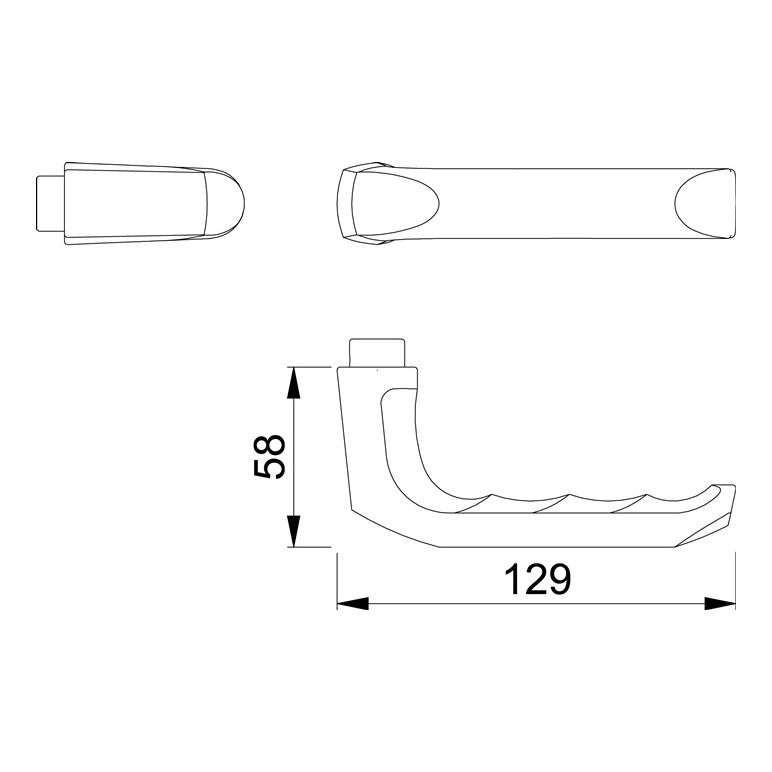 mit Profilstift-Verbindung · Drückerlänge 129 mm · Drückertiefe 58 mm · · DIN links / rechts