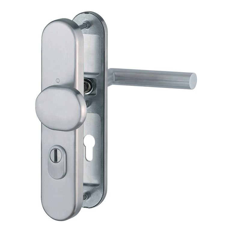 für Außen- / und Wohnungsabschlusstüren · geprüft nach DIN 18257, DIN EN 1906 und DIN 18273 · Türgriff fest/drehbar gelagert · (Gebrauchskategorie 4) · wartungsfreies Gleitlager · Profilvollstift-Verbindung · Unterkonstruktion: außen Stahl, innen Zamak/Stahl inkl. Stütznocken · verdeckt, durchgehende Befestigung · Lochung PZ · Vierkant 9 mm · DIN links / rechts verwendbar · Entfernung 72 mmWeitere technische Eigenschaften:· Ergänzung: D/K· Widerstandsklasse: ES 1· Lagerung: fest-drehbar-gelagert· Vierkant: 9mm