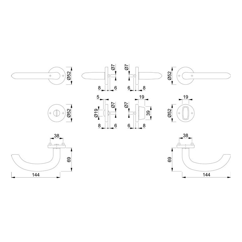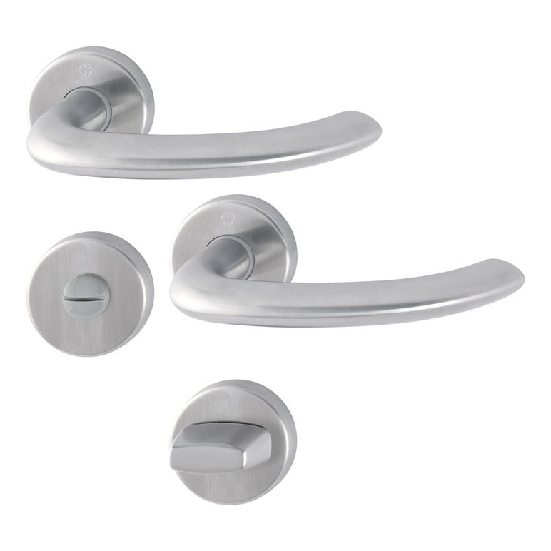 Innentür-Rosetten-Garnitur geprüft nach DIN EN 1906 (Gebrauchs-Kategorie Klasse 3) · Türgriffe mit Schnellstift-Verbindung (mit 8 mm Vollstift) für Türstärke 37 - 42 mm und Rückholfeder · Rosetten mit Stütznocken unsichtbar verschraubt · Anschlagrichtung DIN links / rechtsWeitere technische Eigenschaften:· Befestigungssystem: Schnellstift· Nockenabstand: 38mm