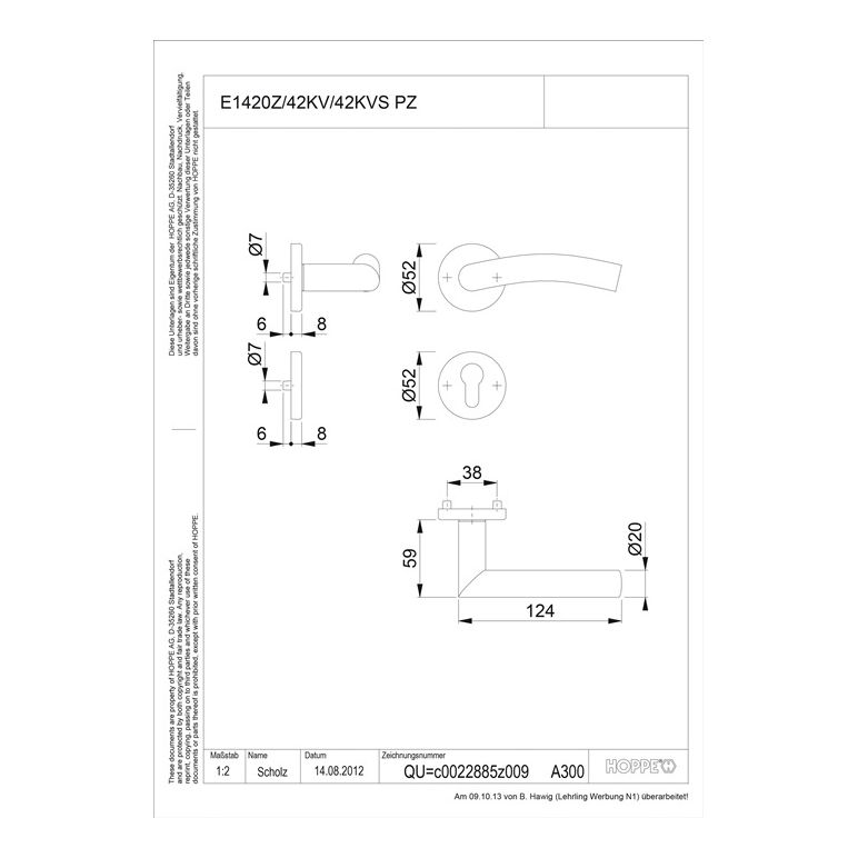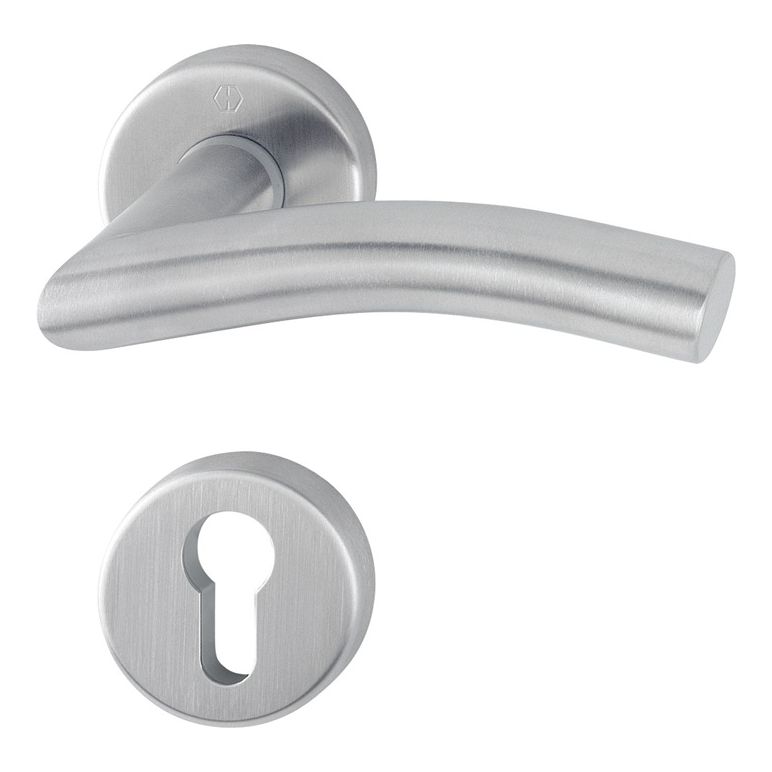Rosetten-Garnitur mit Schlüsselrosetten · geprüft nach DIN EN 1906: 37-0140A (Gebrauchs-Kategorie Klasse 3), Objekt-Garnitur · Lagerung: Türgriffe lose, Rückholfedern rechts/links verwendbar , wartungsfreie Gleitlager · mit Schnellstift-Verbindung bei D/D mit HOPPE-Vollstift (Loch-/Lochteil), bei K/D mit HOPPE-FDW-Vollstift (Lochteil)· Unterkonstruktion: Kunststoff, Stütznocken · Befestigung: verdeckt, durchgehend, wechselseitig, MehrzweckschraubenACHTUNG: bei Wechselgarnituren bitte auf DIN rechts oder links achten!Weitere technische Eigenschaften:· Befestigungssystem: Schnellstift· Nockenabstand: 38mm