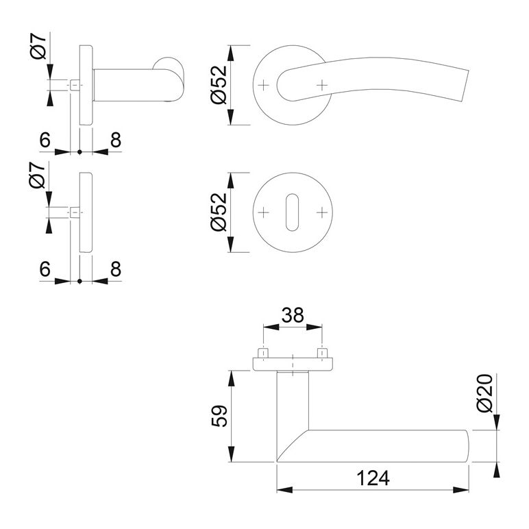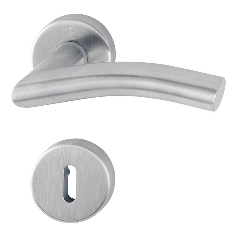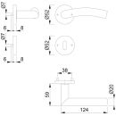 Rosetten-Garnitur mit Schlüsselrosetten · geprüft nach DIN EN 1906: 37-0140A (Gebrauchs-Kategorie Klasse 3), Objekt-Garnitur · Lagerung: Türgriffe lose, Rückholfedern rechts/links verwendbar , wartungsfreie Gleitlager · mit Schnellstift-Verbindung bei D/D mit HOPPE-Vollstift (Loch-/Lochteil), bei K/D mit HOPPE-FDW-Vollstift (Lochteil)· Unterkonstruktion: Kunststoff, Stütznocken · Befestigung: verdeckt, durchgehend, wechselseitig, MehrzweckschraubenACHTUNG: bei Wechselgarnituren bitte auf DIN rechts oder links achten!Weitere technische Eigenschaften:· Befestigungssystem: Schnellstift· Nockenabstand: 38mm