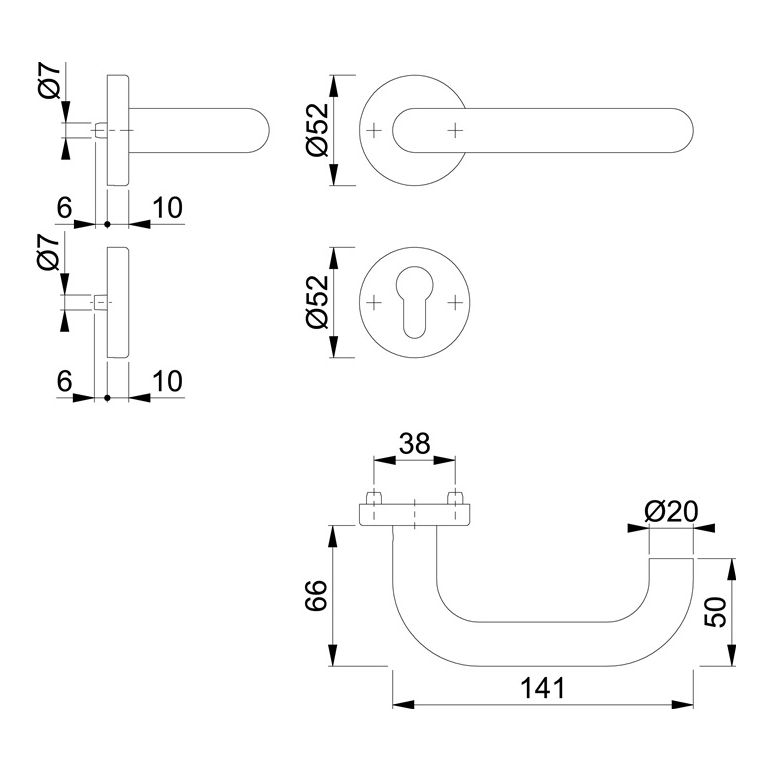 Rosetten-Türgriff-Garnitur mit Schlüsselrosetten für Innentüren · geprüft nach DIN EN 1906: 47-0150A und PIVCERTPlus (1.000.000 Prüfzyklen), Objekt-Garnitur (Gebrauchs-Kategorie Klasse 4) · Lagerung: Türgriffe fest/drehbar (Wechselgarnitur: außen Knopf fest), Rückholfedern, HOPPE-Steckgriff-Verbindung mit Kugel-Arretierung Sertos®, wartungsfreie Gleitlager · Verbindung: HOPPE-Profilvollstift (Drückergrt.) / HOPPE-FDW-Profilvollstift (Wechselgrt.), gehärtet · Unterkonstruktion: Griffrosetten Stahl, Schlüsselrosetten Kunststoff, Stütznocken · Befestigung: verdeckt, durchgehend · Griffrosetten-Gewindeschrauben M5 · Schlüsselrosetten Mehrzweckschrauben, wechselseitig · TS 40 - 45 mmWeitere technische Eigenschaften:· Befestigungssystem: Sertos®· Nockenabstand: 38mm