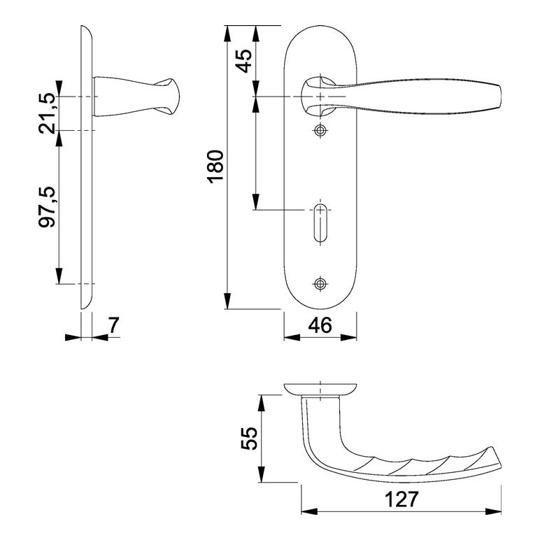 Kurzschildgarnitur New York 1810/273KP Aluminium F1 ob abgerundet Drückergarnitur