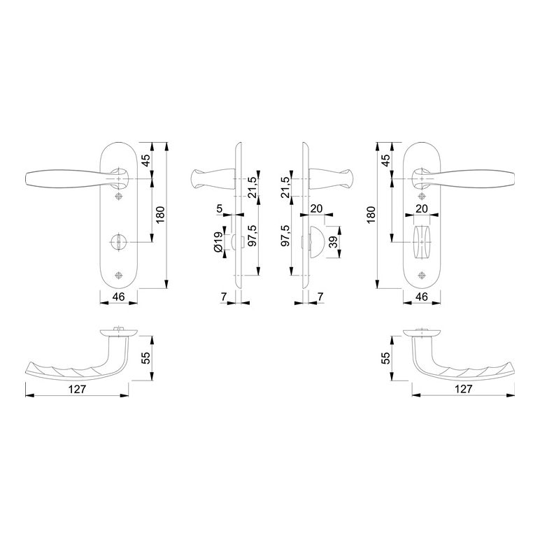 Hoppe Kurzschildgarnitur NY 1810/273KP Alu.F1 Bad SK/OL Drückergarnitur