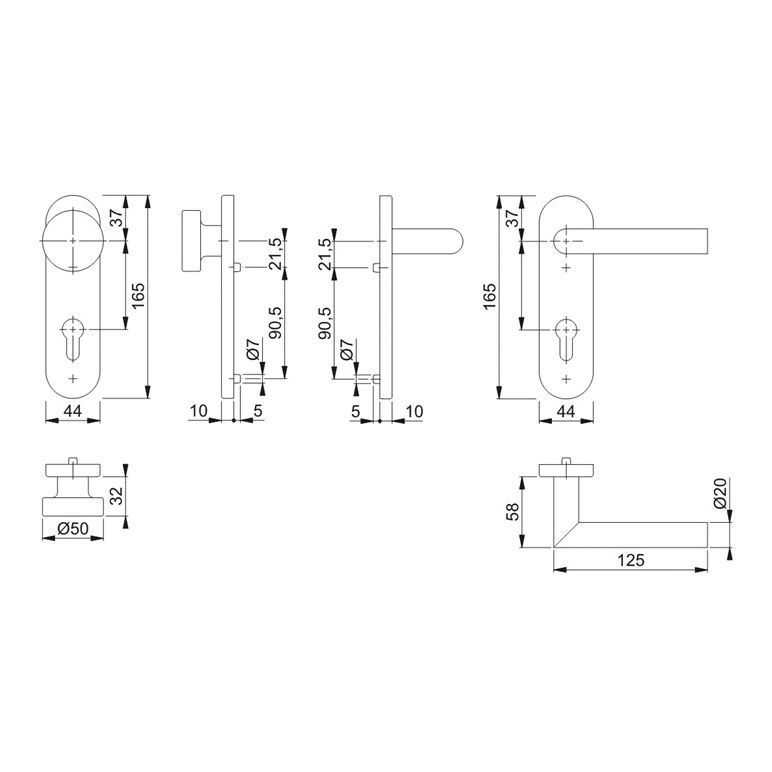 HOPPE Kurzschildgarnitur Amsterdam E58/353KH/1400