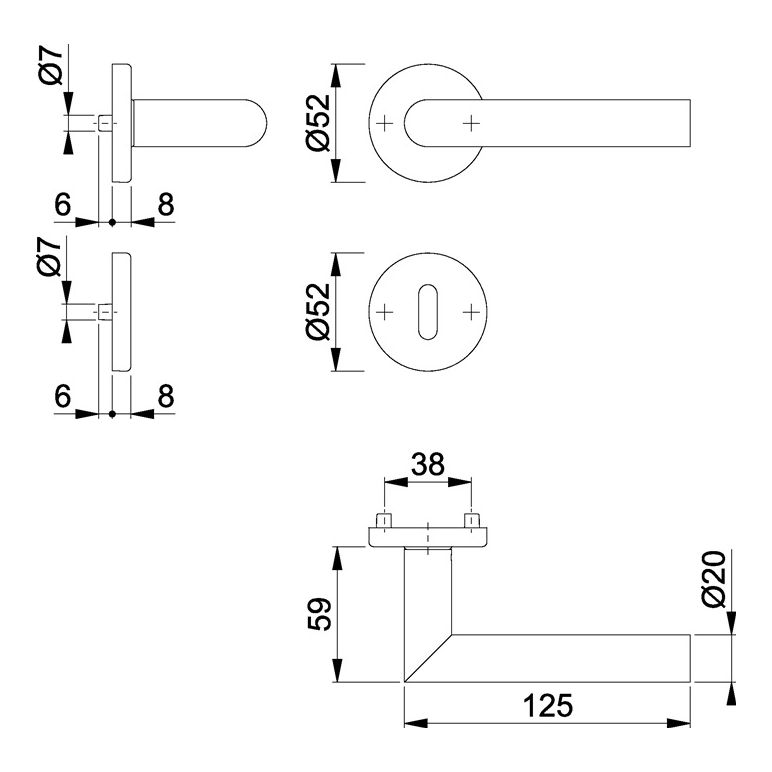 Innentür-Rosetten-Garnitur geprüft nach DIN EN 1906 (Gebrauchs-Kategorie Klasse 3) · Edelstahl, matt · Türgriffe mit Schnellstift-Verbindung (mit 8 mm Vollstift) für Türstärke 37-42 mm · Rosetten mit Kunststoff-Unterkonstruktion, Rückholfeder und Stütznocken · verdeckte, durchgehende Verschraubung mit selbstschneidenden Gewindeschrauben · Anschlagrichtung DIN links / rechtsWeitere technische Eigenschaften:· Befestigungssystem: Schnellstift· Nockenabstand: 38mm