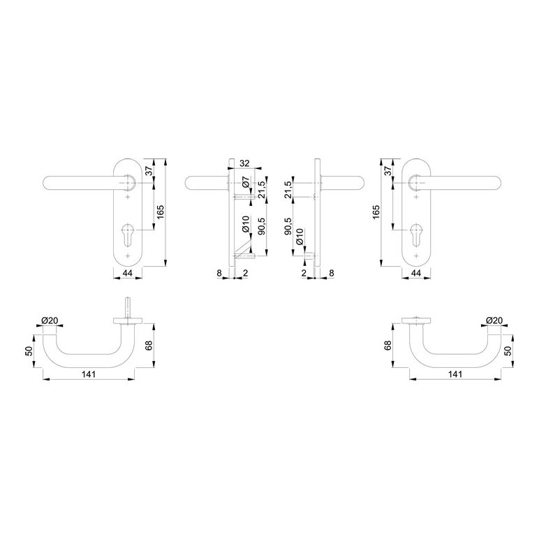 Paris Kurzschild-Garnitur E138Z/353K-72 mm-Profilzylinder-35 - 45 mm-Innentür - Hoppe