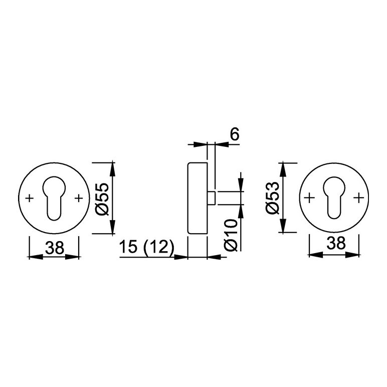 Schutzrosette E42NSA Edelstahl F69 rund ohne Zylinderabdeckung Stärke 12 mm