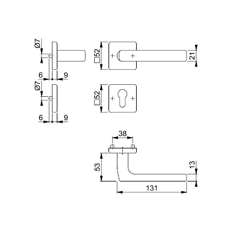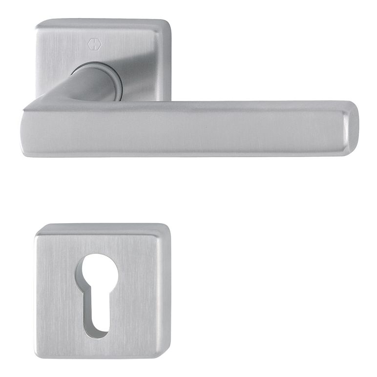 Innentür-Rosetten-Garnitur geprüft nach DIN EN 1906 (Gebrauchs-Kategorie Klasse 3) · Türgriffe mit Schnellstift-Verbindung (8 mm Vierkant) für Türstärke 37-42 mm und Rückholfeder · Rosetten mit Stütznocken unsichtbar verschraubt · Edelstahl matt · Anschlagrichtung DIN links / rechtsWeitere technische Eigenschaften:· Befestigungssystem: Schnellstift· Nockenabstand: 38mm