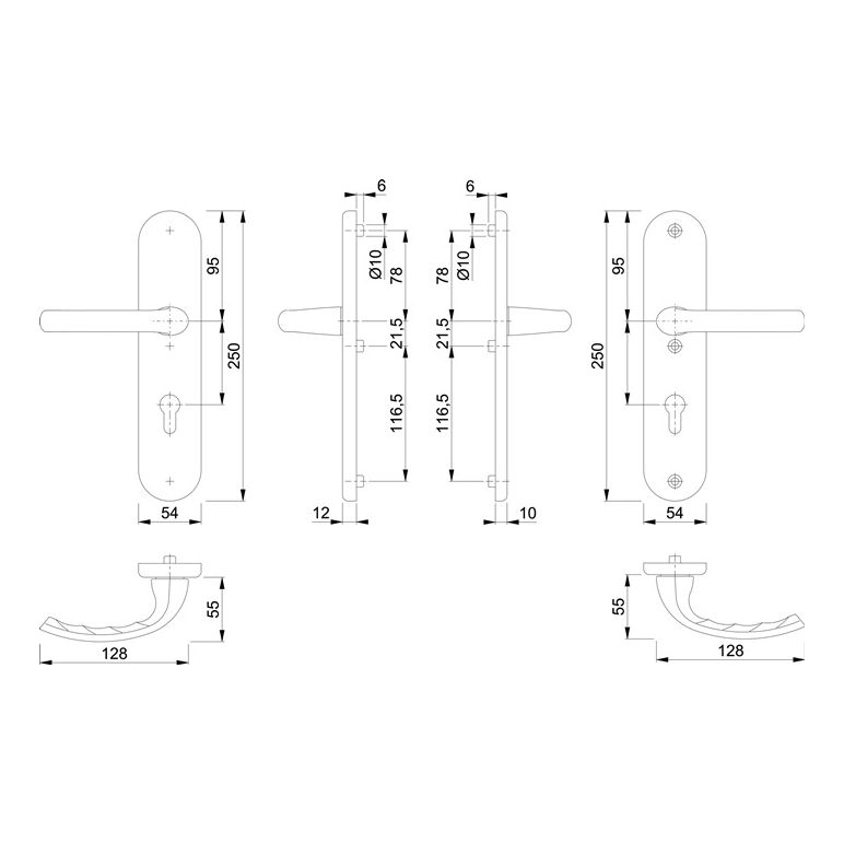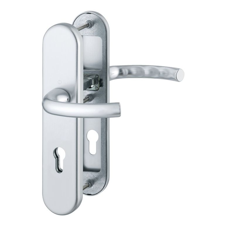 für Abschlusstüren · geprüft nach DIN EN 1906: zertifiziert nach DIN 18257 · Unterkonstruktion: außen Stahl, innen Aluminium, Stütznocken · mit Rückholfeder-Paket · loser Türgriff · mit Schnellstift-Verbindung · PZ · sichtbare Verschraubung · DIN links / rechts · Widerstandsklasse ES 1Weitere technische Eigenschaften:· Breite: 54mm· Länge: 250mm· Abdeckung: ohne Zylinderabdeckung· Schildstärke: 12 mm