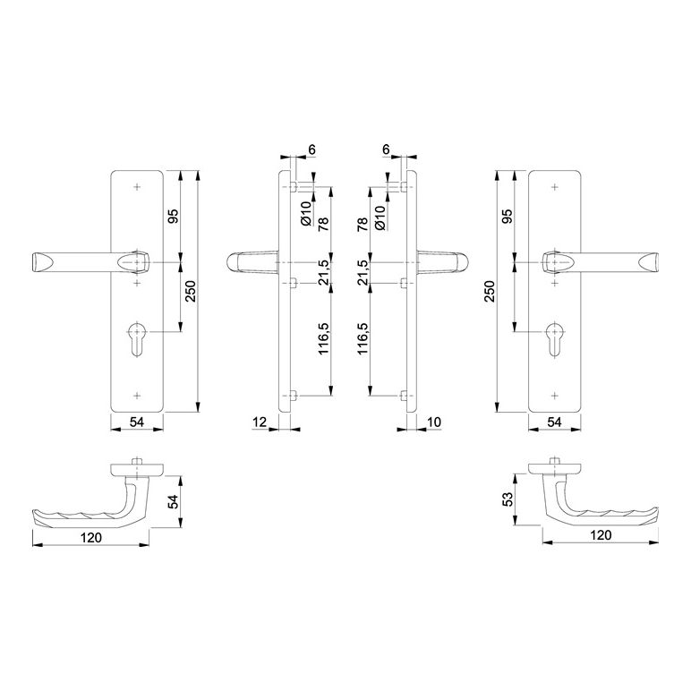 für Abschlusstüren · einbruchhemmend nach DIN 18257 · Knopfschild-Randhöhe: 12 mm · Stahlunterkonstruktion im Innen- und Außenschild · mit Rückholfeder-Paket (bei 8 mm Vierkant / NICHT bei 10 mm) · FDW-Profilstift-Verbindung · DIN links / rechts verwendbar · hochfeste, verdeckte Verschraubung · Lochung PZ · einschließlich Befestigungsmaterial · Widerstandsklasse ES 1Weitere technische Eigenschaften:· Breite: 54mm· Länge: 250mm· Abdeckung: ohne Zylinderabdeckung· Schildstärke: 12 mm