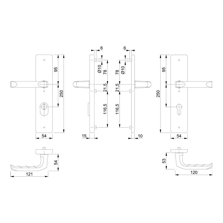 für Abschlusstüren mit ZA · geprüft nach DIN 18257 · Unterkonstruktion: außen Stahl, innen Aluminium, Stütznocken · Wechselgarnituren mit gekröpftem Knopf · Zylinderabdeckung: gehärteter Stahl, für vorstehende Zylinderlänge 10-18 mm · HOPPE FDW Profilstift-Verbindung · Lochung PZ · Widerstandsklasse ES 1 · Befestigung: verdeckt, durchgehend, Gewindeschrauben M6Weitere technische Eigenschaften:· Breite: 54mm· Länge: 250mm· Abdeckung: mit Zylinderabdeckung· Schildstärke: 15 mm