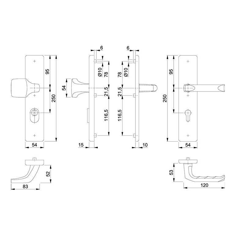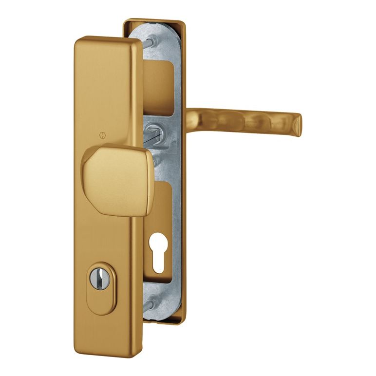 für Abschlusstüren mit ZA · geprüft nach DIN 18257 · Unterkonstruktion: außen Stahl, innen Aluminium, Stütznocken · Wechselgarnituren mit gekröpftem Knopf · Zylinderabdeckung: gehärteter Stahl, für vorstehende Zylinderlänge 10-18 mm · HOPPE FDW Profilstift-Verbindung · Lochung PZ · Widerstandsklasse ES 1 · Befestigung: verdeckt, durchgehend, Gewindeschrauben M6Weitere technische Eigenschaften:· Breite: 54mm· Länge: 250mm· Abdeckung: mit Zylinderabdeckung· Schildstärke: 15 mm
