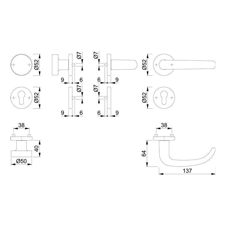 Innentür-Rosetten-Garnitur nach DIN EN 1906 (Gebrauchs-Kategorie Klasse 3) · Türgriffe mit Schnellstift-Verbindung (mit 8 mm Vollstift) für Türstärke 37 - 42 mm · Rosette mit Kunststoff-Unterkonstruktion, Rückholfeder und Stütznocken · Befestigung verdeckt, durchgehend · wechselseitig inkl. Mehrzweckschrauben · Anschlagrichtung DIN links / rechtsWeitere technische Eigenschaften:· Befestigungssystem: Schnellstift· Nockenabstand: 38mm