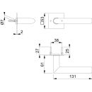 Hoppe-SchnellstiftPlus-Edelstahl-Flachrosetten-Türgriff-Garnitur ohne Schlüsselrosetten für Innentüren · mit Hoppe Vollstift (Stift-/Lochteil) · geprüft nach DIN EN 1906:37-0140U (Gebrauchs-Kategorie Klasse 3) · Lagerung: Türgriff lose, wartungsfreie Gleitlager · aufsteckbare Edelstahl-Griffrosetten mit durchgehenden Stütznocken · für Türstärke 35-45 mm · Drückerlänge 131 mm · Drückertiefe 61 mm · DIN links / rechts · Besonderheit: schrauben- und werkzeuglose Montage, 2 mm flache quadratische RosettenWeitere technische Eigenschaften:· Befestigungssystem: SchnellstiftPlus