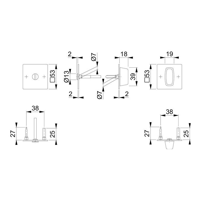 Hoppe Flachrosette Drückerrosette wc mit Stütznocken eckig Edelstahl matt