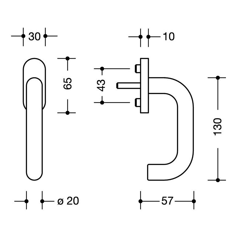 aus Polyamid, Durchmesser 20 mm, 130 mm lang, mit 90 Grad-Rastpunkten und 7 mm Vollstift, Länge 30 mm vorstehend. Der Fenstergriff erfüllt die Vorgaben der DIN 18040. Vormontiert auf Ovalrosette 65 x 33 mm, mit Stützzapfen Durchmesser 10 mm, verdeckte Verschraubung, Schraublochabstand 43 mm, Abdeckkappe aus Polyamid. Lieferung ohne Befestigungsschrauben · Artikel: HEWI 111FG.1Weitere technische Eigenschaften:· Grifflänge: 130mm· Nocken-Ø: 10mm· Lochabstand: 43mm· Sockelstärke: 12mm· Vierkant: 7mm