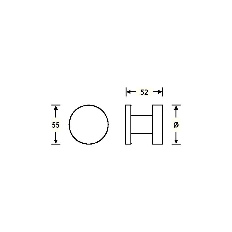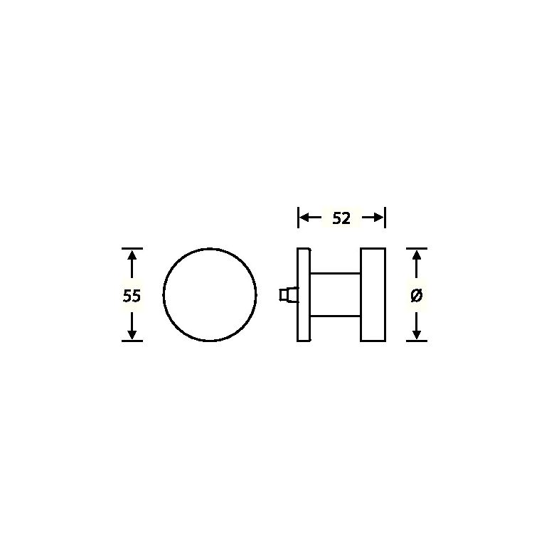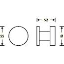 Befestigung einseitig · Knöpfe Massiv · Knöpfe (Ø 50 mm Aluminium, Ø 55 mm Edelstahl) auf Rosette (Ø 55 mm) · Befestigung 05 (Verschraubung einseitig) mit Stahl-Unterplatte zum Aufschrauben · ohne Vierkant · die Verbindung wird über eine Madenschraube sichergestellt · Knopfhöhe 52 mm · festWeitere technische Eigenschaften:· Türstärke: 37 - 46mm· Form: gerade· Knopftiefe: 52mm· Anschlagrichtung: DIN links / rechts